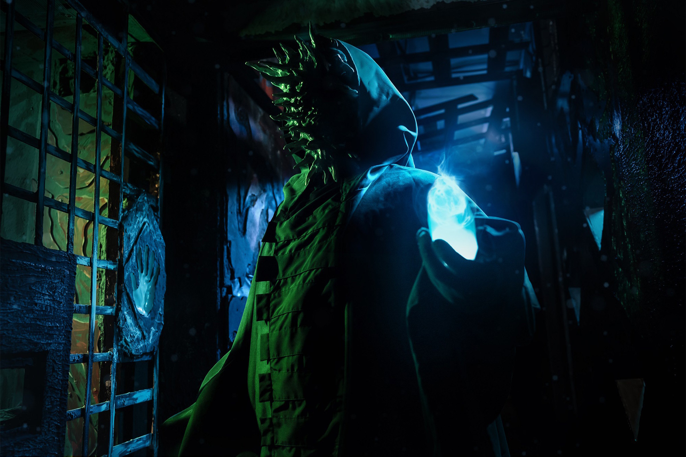 Здесь страх имел свой шарм, что делало его даже комфортным. Пугающие герои являли собой вопиющих монстров, внешний вид которых вызывал ужас и восхищение. Костюмы были продуманы до мелочей. Существа отличались размерами и внешностью, например, одно передвигалось на четвереньках, а другое имело лицо из шипов. Эти монстры резко появлялись, стремясь взаимодействовать с нами. Алхимик, облаченный в мантию, представлял власть в этом месте, а куб на столе, светящийся и одушевленный, мог прийти на помощь в случае необходимости.