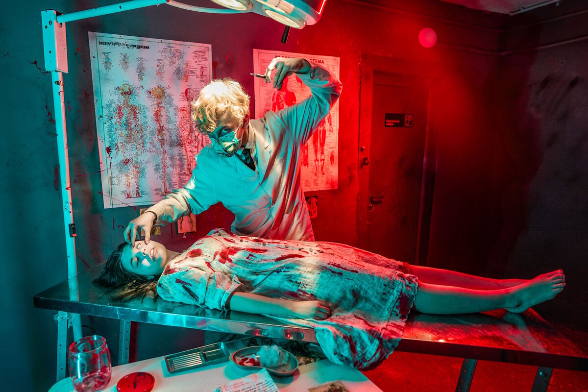Игровая зона также условно разделялась на две части: презентабельную и маньячную. Сначала мы попали в заведение, соответствующее всем канонам больничной тематики: бело-зеленые стены, чистота, плакаты с информацией, стильная мебель, яркий свет. Фишка проекта заключалась в том, что welcome-пространство оказалось полностью игровым. Также к стоматологической части относился смотровой кабинет, куда мы попали в ожидании непосредственного приема врача. Маньячная часть площадки состояла из брутальной операционной. Здесь были металлический стол, большая круглая лампа для операций, компьютер, медицинские инструменты, а неподалеку еще и камера для содержания жертв. На этом этапе важно отметить, что игровая площадь была спроектирована таким образом, чтобы не отвлекать от решения головоломок. То есть все, что попадалось нам на пути, так или иначе было использовано. Также мы побывали в нескольких подсобных помещениях и даже смогли залезть в вентиляцию. Удивил нас и тот факт, что планировка комнат менялась прямо во время игры. Например, вернувшись в холл, мы его не узнали, да и двери тут использованы нестандартные.