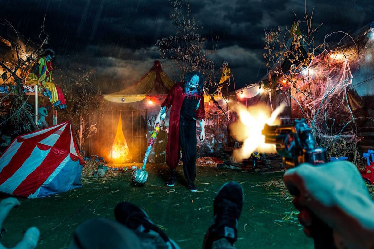 Помещения сохранили дух и знаковые комнаты, но претерпели некоторые косметические изменения. Например, welcome-зона стала двухэтажной. Самая главная часть, то есть поляна, стала выглядеть совершенно иначе. На этот раз она представляла собой большое помещение, в котором мы увидели шатры, фургончик с мороженым, игровые автоматы, кассу и прочие характерные элементы бродячего цирка. Во всех комнатах использовалась разноцветная подсветка, что помогало нам почувствовать праздничную цирковую атмосферу. Довелось нам попасть и в другие характерные комнаты. Например, это были гримерка или помещения для выполнения различных трюков. Встречались нам манекены и коридор с десятком лиц, а также афиши, мягкие игрушки, воздушные шарики, гирлянды, костюмы, парики и прочее. Сами помещения были раскрашены в яркие тона, но не слишком. Они были созданы таким образом, чтобы быть похожими на некогда цирк, дарящий радость, но сейчас либо находящийся в запустении, либо во власти злых сил. Потолок в комнатах был оформлен тканью в виде шатра. Из изменений мы заметили несколько новых аттракционов-активностей, наводящих страх. Переходы были максимально нестандартными и напоминали те же аттракционы, поскольку в эти моменты с нашим телом происходили весьма неожиданные манипуляции.