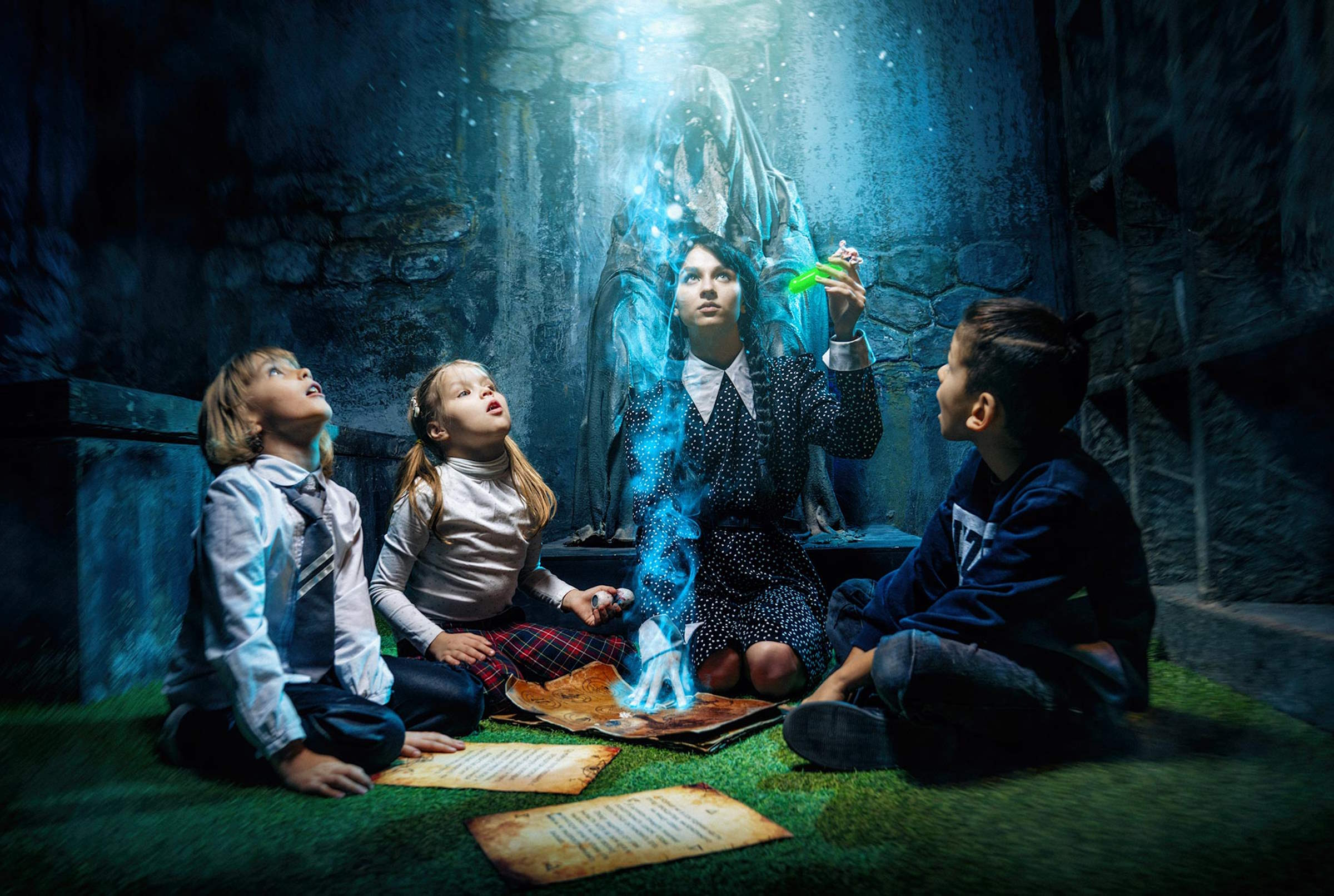 (любитель)Шикарный квест! Девчонки 11 лет реально погрузилась в атмосферу. Было очень интересно, шикарная работа Уэнсдей и оборотня (Аня и Саша вы лучшие). Было настолько захватывающее, антуражно, немного страшновато)) интересно как детям, так и взрослым)