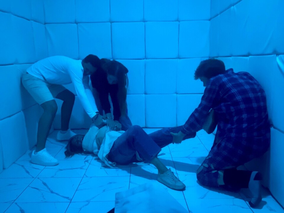Антураж слабый. Интерьер едва похож на клинику, костюмы — обычные халаты, локация не вызывает ощущения реалистичности или погружения. Нам зачем-то выдали резиновые тапки разных размеров — вероятно, для антуража, но в них было неудобно и небезопасно перемещаться.