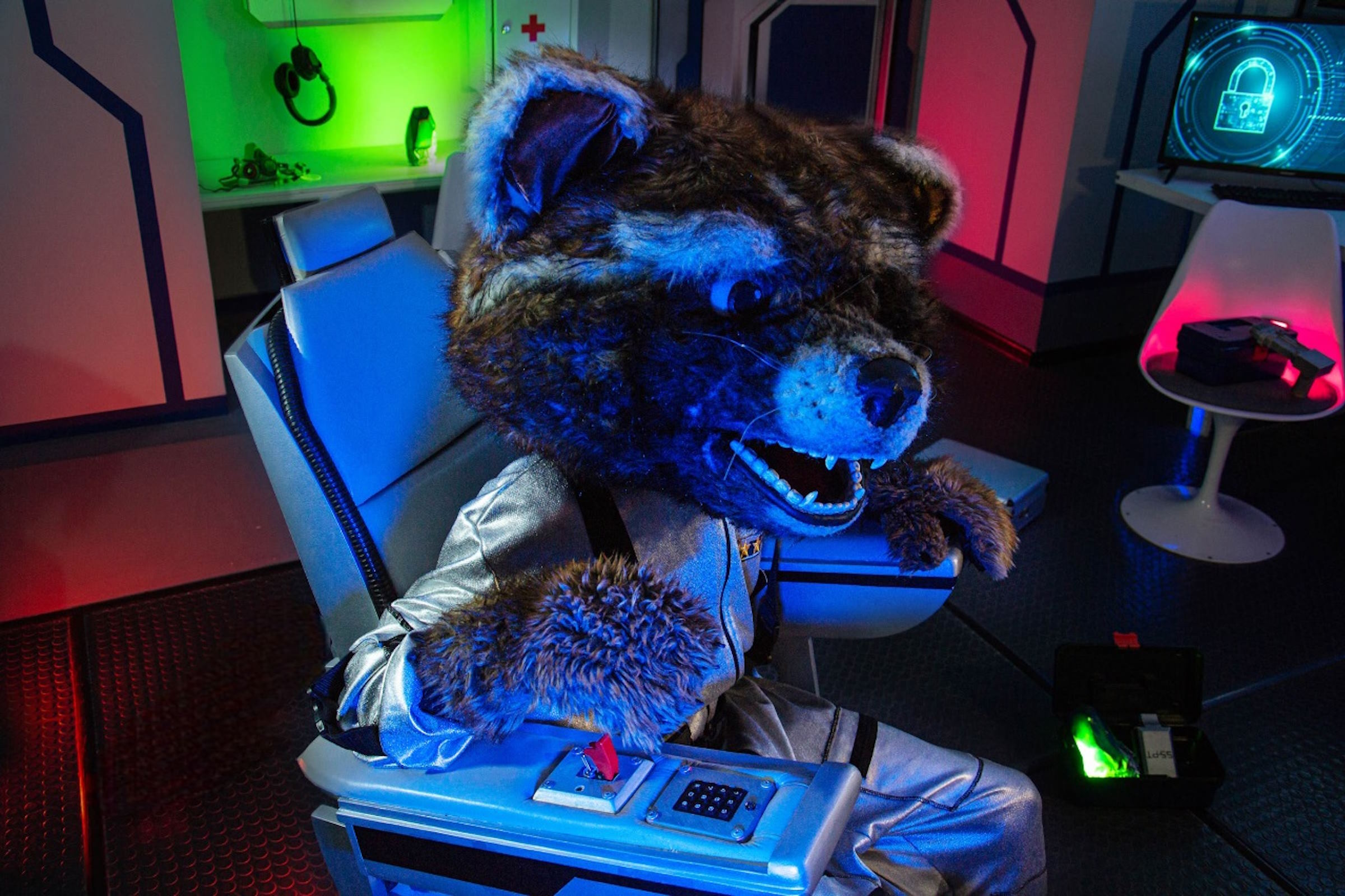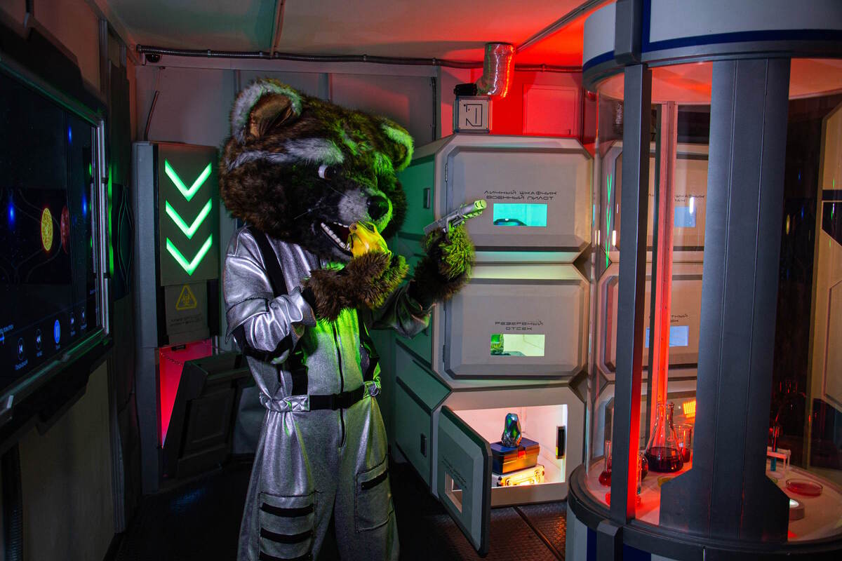 Перформанс «Ракета: космический хаос» проходит с актером-аниматором – ярким и харизматичным персонажем, дающим отсылку к одной из известных кинематографических вселенных.