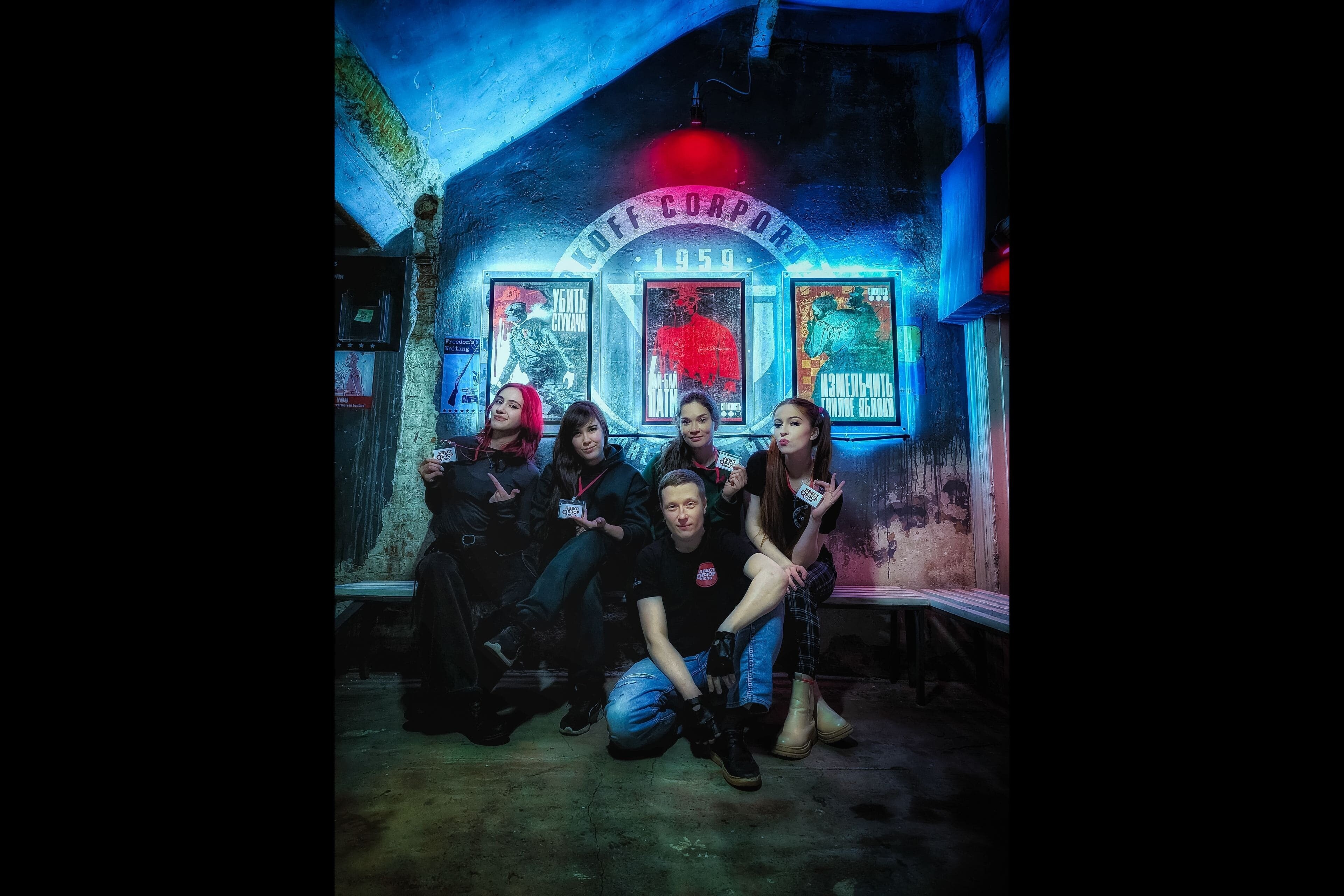 В квесте нас ждало несколько зон, одновременно мрачных и красочных. Лобби было оформлено в лучших традициях антиутопии: многочисленные телевизоры транслировали обращения главы корпорации. В полицейском участке оказались не только камеры для заключенных, но и специальное помещение для казни на электрическом стуле. Больница включала палаты с койками и ширмами, процедурные кабинеты со всякой медицинской всячиной, внушительную операционную, склад со стеллажами, а также всякую всячину вроде шкафчиков и прочего. Детский приют поразил масштабами. В нем нас ждал класс с доской и множеством парт, столовая и спальня с кроватями.